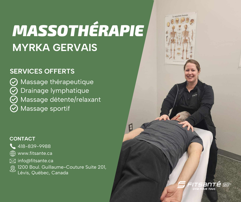 Nouveauté 2025, profitez de services en massothérapie ainsi qu'en thérapie sportive que vous soyez membre ou non chez Fitsanté!